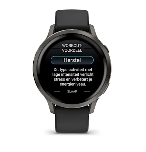 Met de Garmin Venu 4 zwart 41 mm weet je meer over je gezondheid en krijg je tips voor het verbeteren van je levensstijl. Je krijgt bijvoorbeeld inzicht in je dagelijkse beweging, stressniveau en slaap. Al deze informatie vind je in de Garmin Connect app. Je workouts houd je ook nauwlettend bij. Dankzij de Garmin Coach functie maak je persoonlijke trainingsplannen en krijg je tips voor trainingen op basis van je fitheid. De handige zaklamp gebruik je als je in het donker iets kwijt bent of als je extra zichtbaar wil zijn tijdens het hardlopen. Je ziet al je smartphonemeldingen op dit horloge en je belt er ook mee. Je luistert naar je favoriete muziek, ook als je je smartphone niet bij je hebt. Je moet dan wel je draadloze oordopjes verbinden met het horloge. De batterij gaat bij gemiddeld gebruik tot 10 dagen mee.